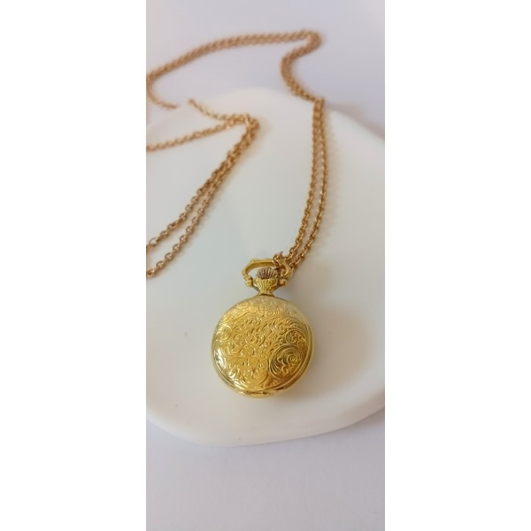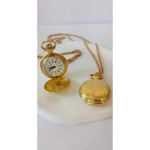 VINTAGE Airin ανοιγόμενο γυναικείο ρολόι λαιμού ατσάλινο επιχρυσωμένο (VIN79 - 148050)