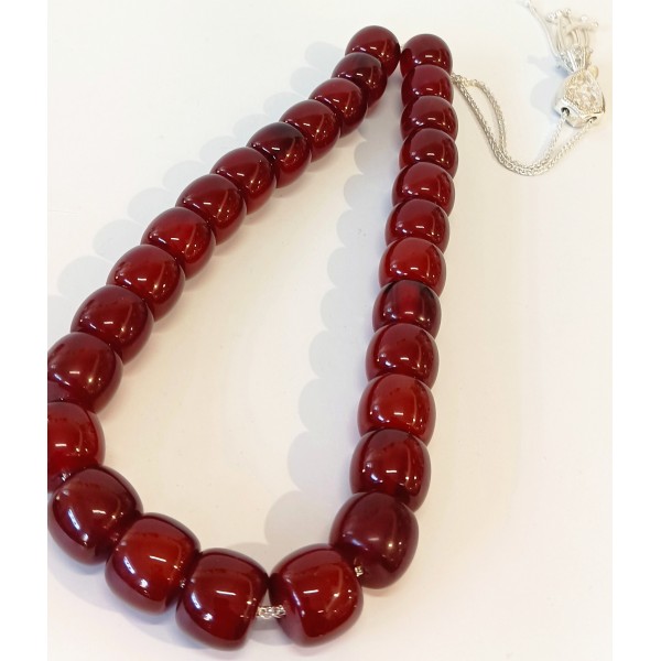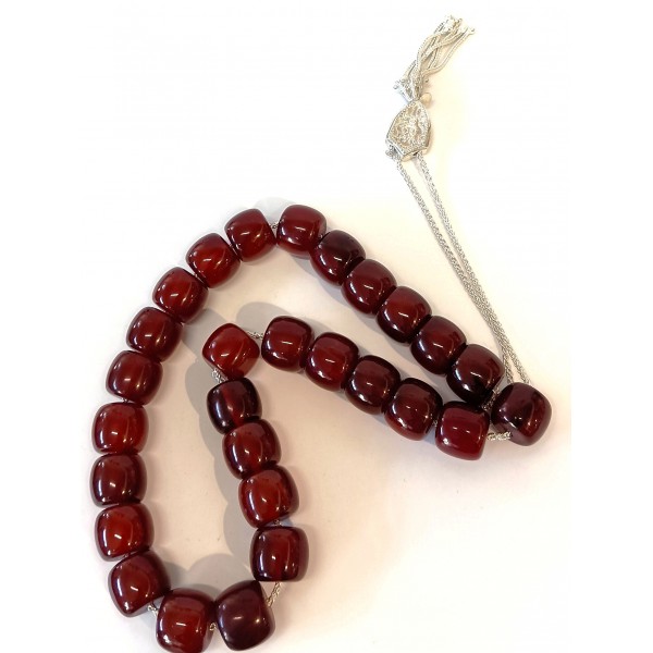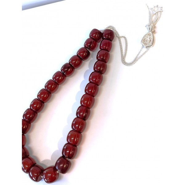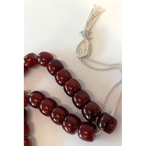 Κομπολόι από ασήμι 925 με χάντρες από κεχριμπάρι φατουράν χρώματος κερασιού (KOM05)