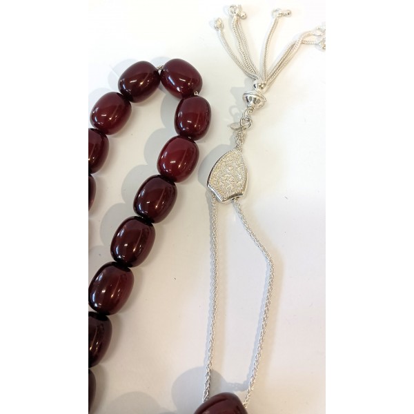 Κομπολόι από ασήμι 925 με χάντρες από κεχριμπάρι φατουράν χρώματος κερασιού (KOM12)