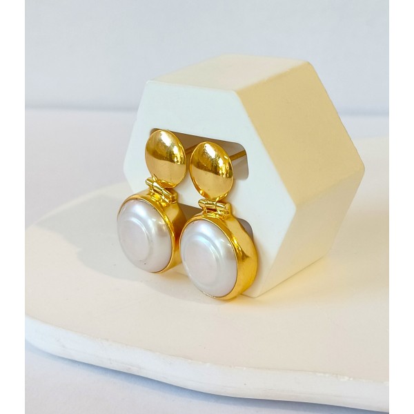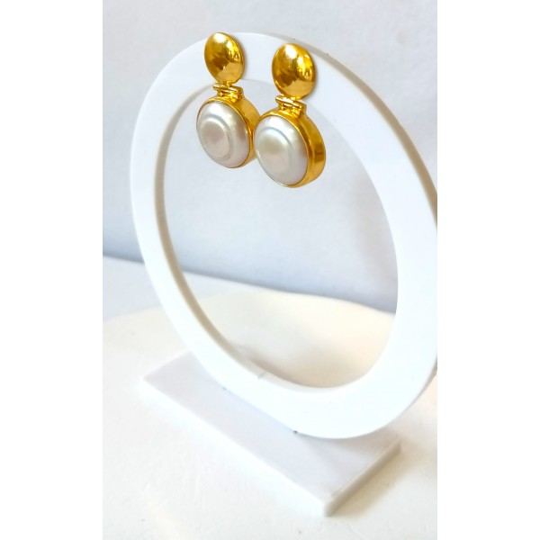 Ασημένια Σκουλαρίκια επίχρυσα με μαργαριτάρι (SE33)