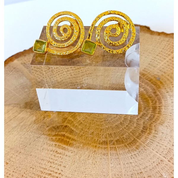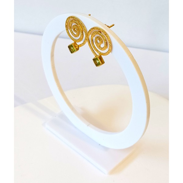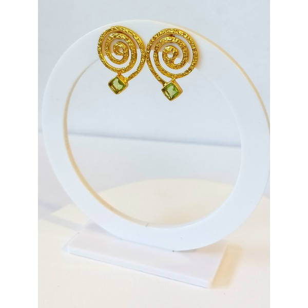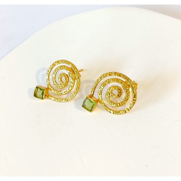 Ασημένια Σκουλαρίκια επίχρυσα σε σχέδιο σπείρας και με ζιργκόν (SE34)