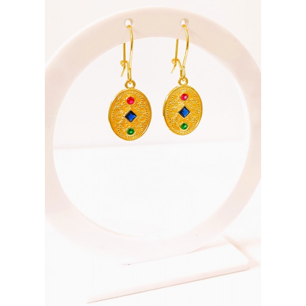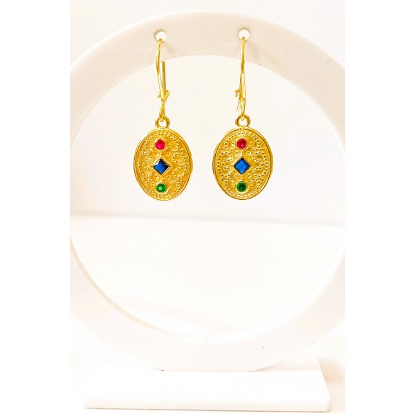 Ασημένια επίχρυσα βυζαντινά κρεμαστά σκουλαρίκια με ζιργκον (SE120)