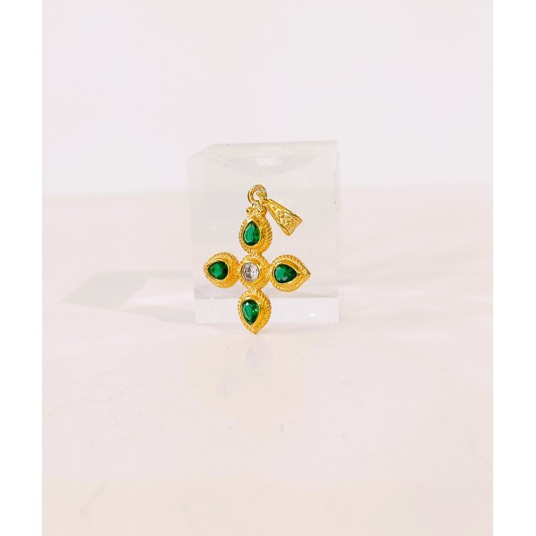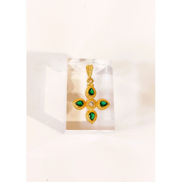 Ασημένιος σταυρός επίχρυσος βυζαντινός με ζιργκόν 3,1x2εκ.