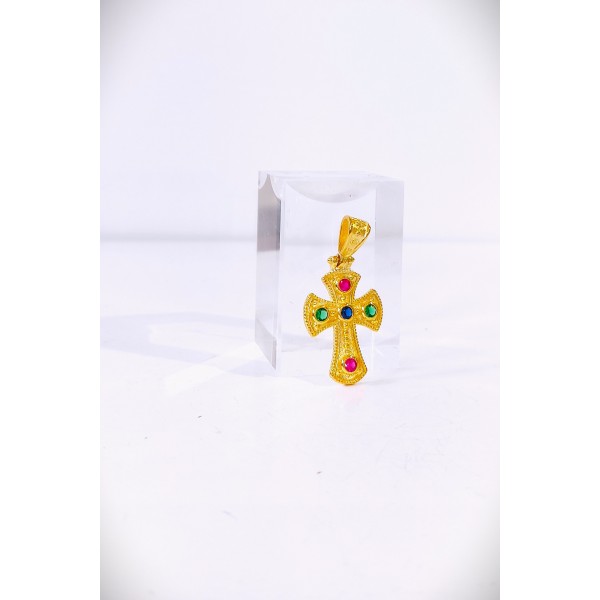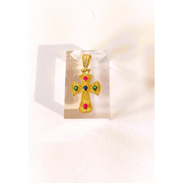Ασημένιος σταυρός επίχρυσος βυζαντινός με ζιργκόν SCR44